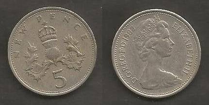 Münze Großbritanien: 5 New Pence 1968