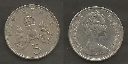 Münze Großbritanien: 5 New Pence 1970
