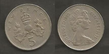 Münze Großbritanien: 5 New Pence 1980