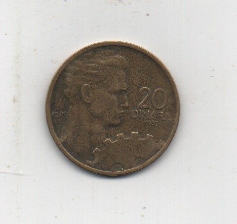 Münze Jugoslawien 20 Dinara 1955