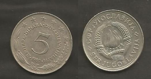 Münze Jugoslawien: 5 Dinara 1980