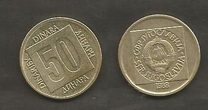 Münze Jugoslawien: 50 Dinara 1988 - Typ 2