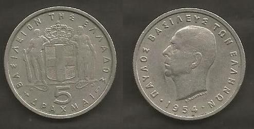 Münze Königreich Griechenland: 5 Drachme 1954