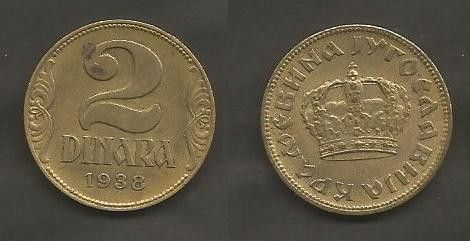 Münze Königreich Jugoslawien: 2 Dinara 1938