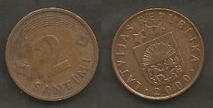 Münze Lettland: 2 Sentimi 2000