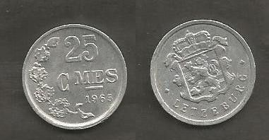 Münze Luxemburg: 25 Centimes 1965