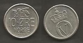 Münze Norwegen: 10 Öre 1967