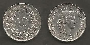 Münze Schweiz: 10 Rappen 1962