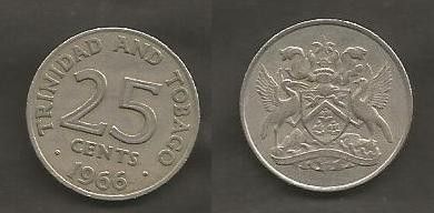 Münze Trinidad & Tobaco: 25 Cent 1966