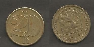 Münze Tschecheslowakei: 20 Hellar 1974
