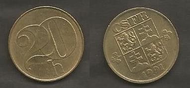 Münze Tschecheslowakei: 20 Hellar 1991