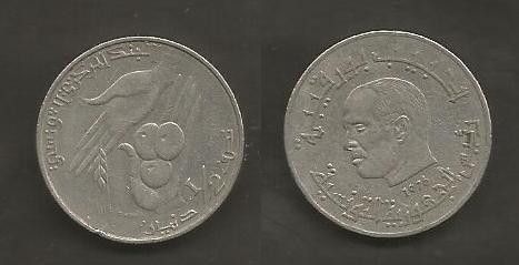 Münze Tunesien: 0,5 - 1/2 Dinar 1976