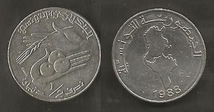 Münze Tunesien: 0,5 - 1/2 Dinar 1988