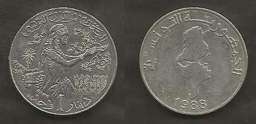 Münze Tunesien: 1 Dinar 1988