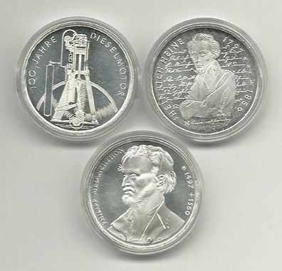 • Deutschland 10 DM Münze 1993 150. Geburtstag von Robert Koch 625/1000 Silber 15,5 Gr