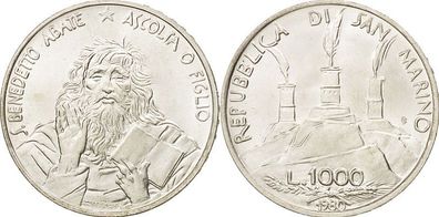 • San Marino Silber 1 000 Lire 1980 "1500. Geburtstag des Hl. Marinus von Nursia"