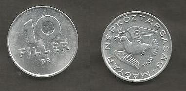 Münze Ungarn: 10 Filler 1989