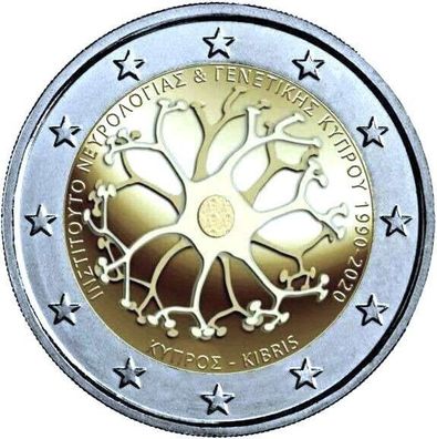 2 Euro Münze ZYPERN Gedenkmünze Neurologie UND Genetik 2020 UNC/ BU