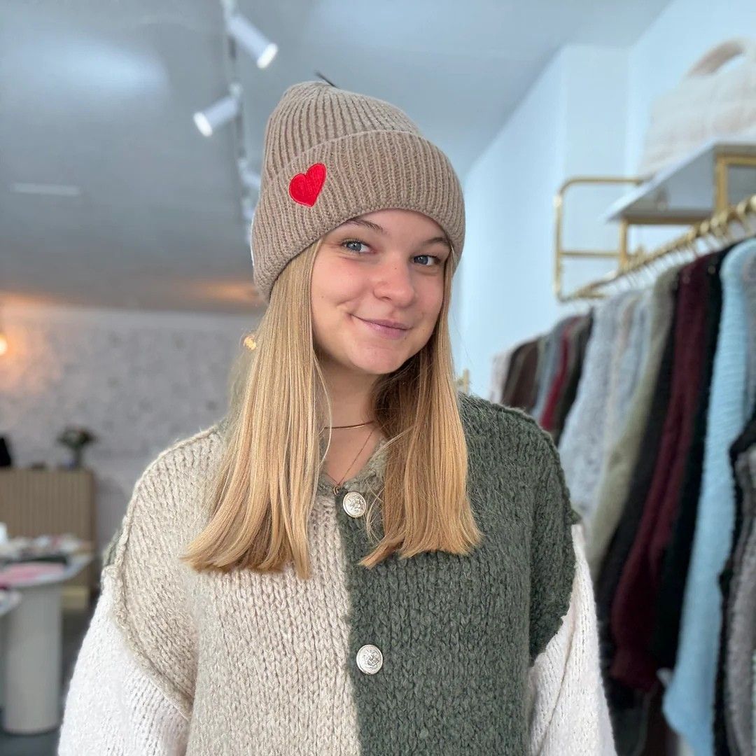 Mütze Herzstickerei Leonie Beige Damen Mützen Frauen Strickmütze Frau Beanie