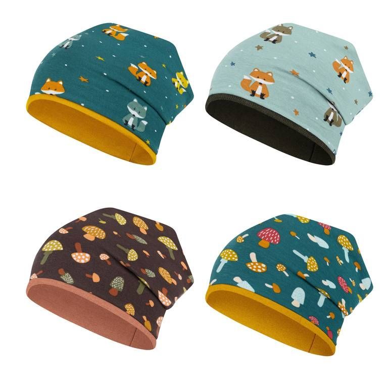 Mütze Junge Mädchen Herbst Übergang Stoffmütze Beanie Kindermütze Allover-Print