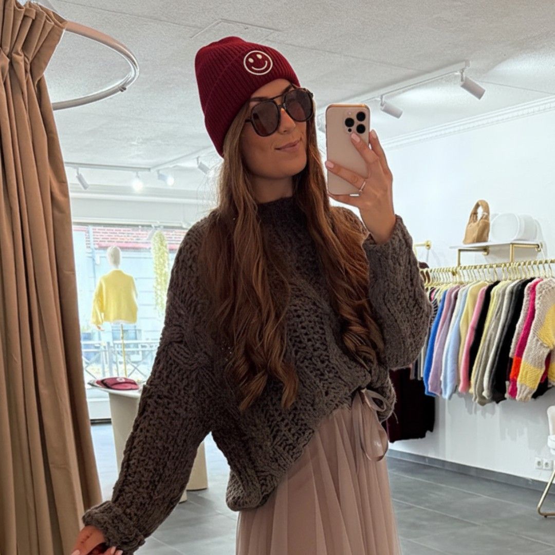 Mütze Smiley Nora Weinrot Damen Mützen Frauen Strickmütze Winter Beanie