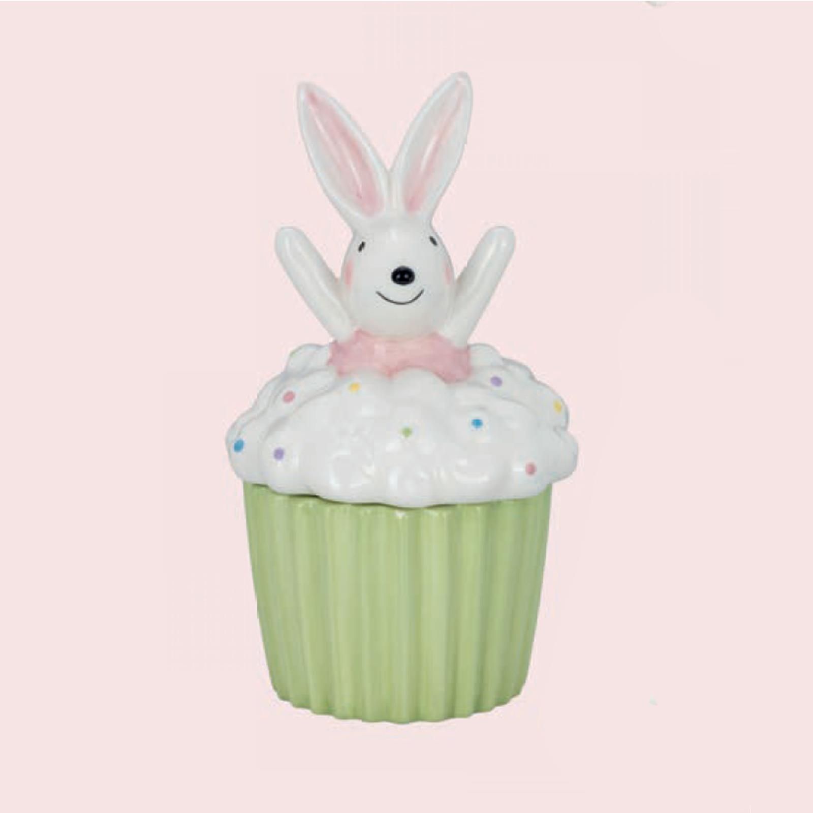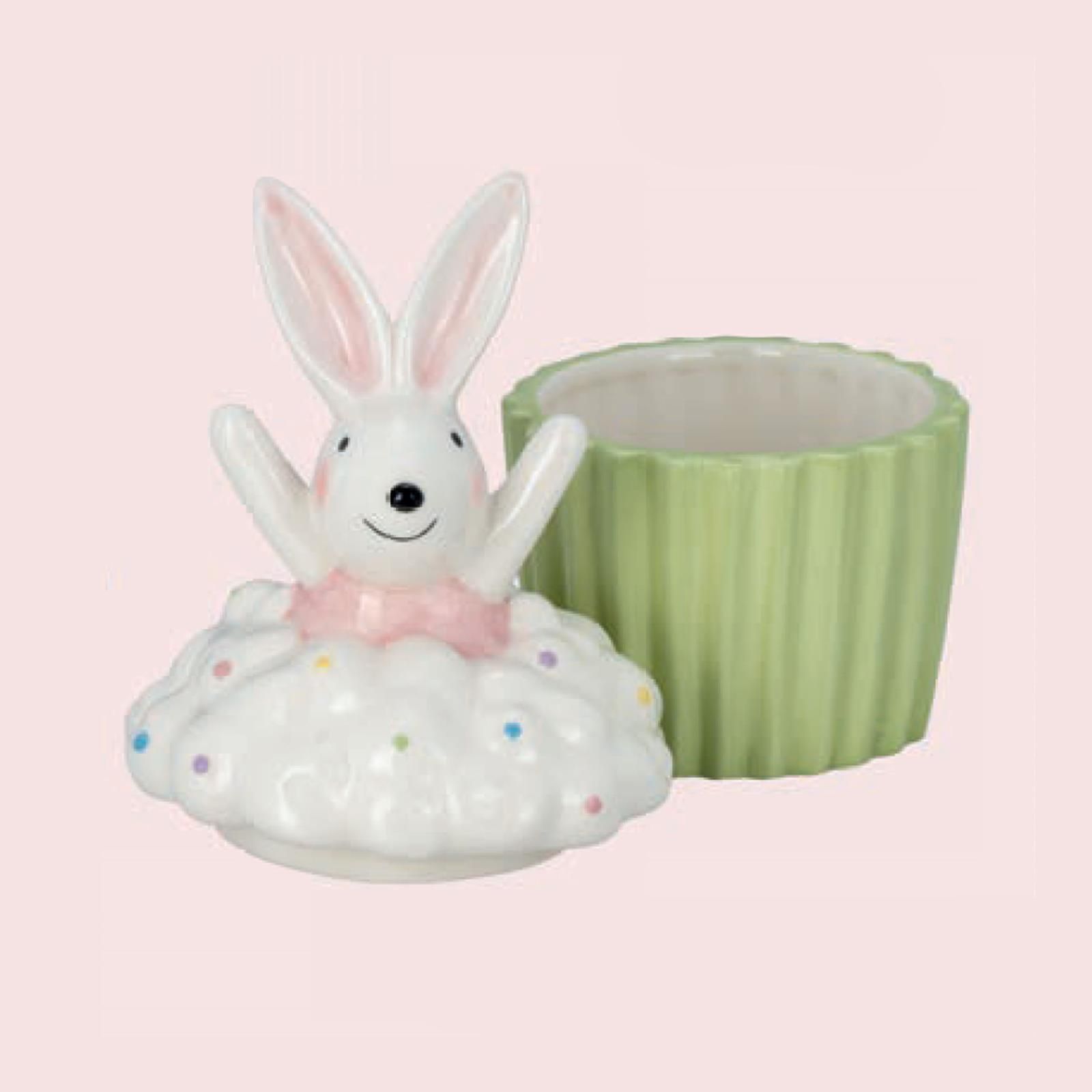 Muffin-Dose mit Deckel 12 cm Keramik grüne Dekodose Osterhasen-Dekor Osterdeko