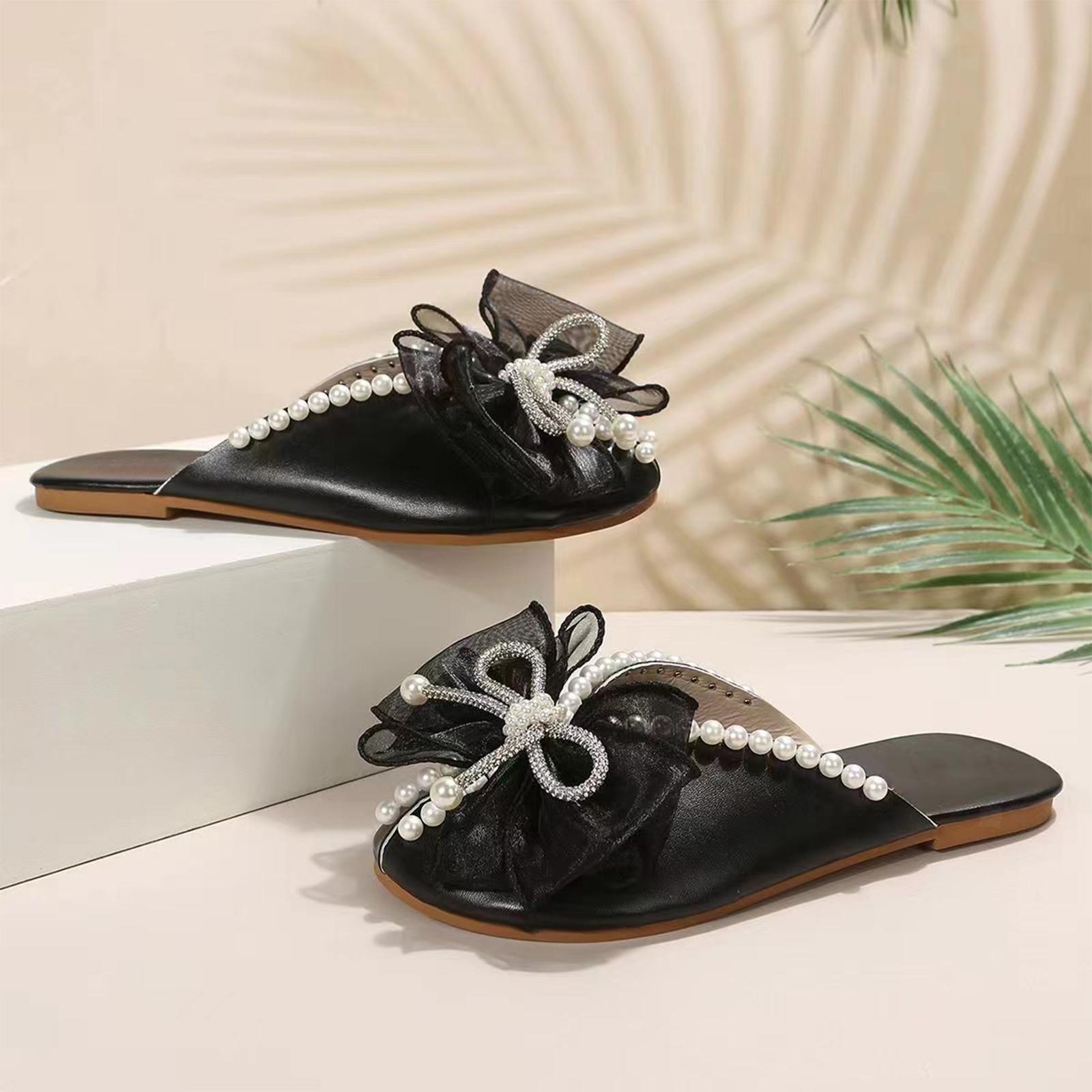 Mule Schuhe Strass Schleife Schuhe Mode Sandalen fur Straben Frauen Strand