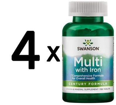 • 4 x Swanson Century Formula, Multi-Vitamin & Mineral with Iron - 130 tabs