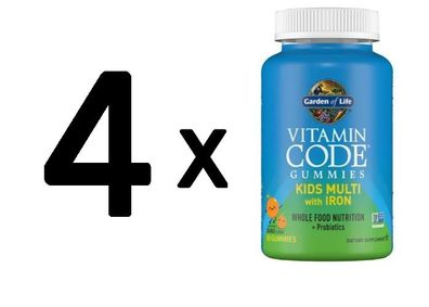 • 4 x Garden of Life Vitamin Code Kids Multi with Iron Gummies, Orange - 90 gummies