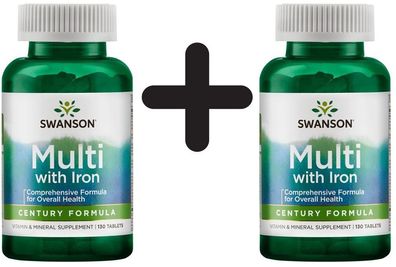 • 2 x Swanson Century Formula, Multi-Vitamin & Mineral with Iron - 130 tabs