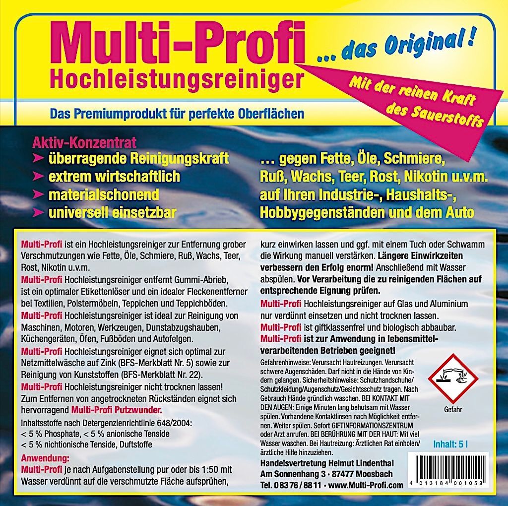 Multi-Profi Hochleistungsreiniger - entfernt jeden Schmutz Fett Öl Wachs Russ Nikotin