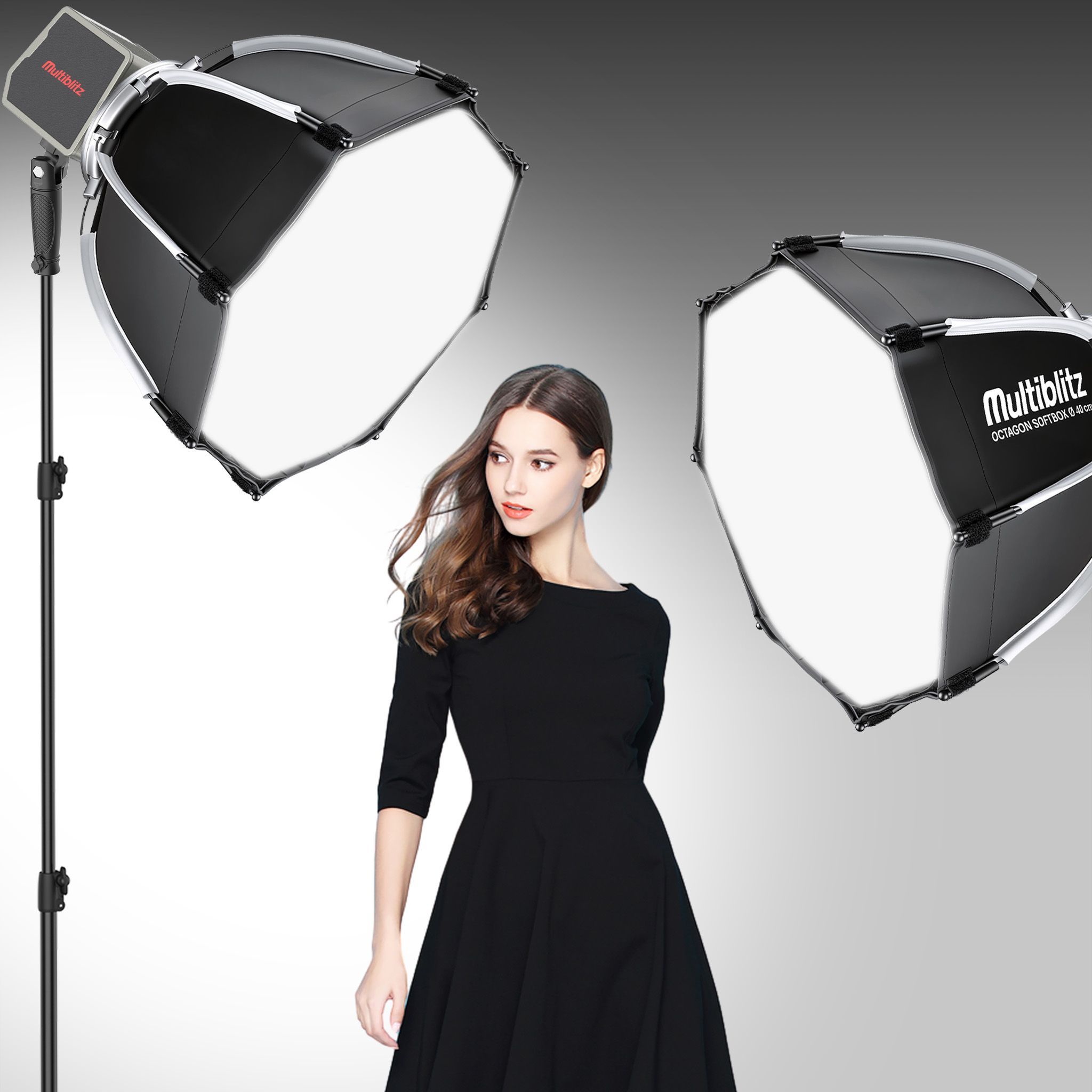 Multiblitz Multiblitz Set 2x Fotolicht LED 60W 2x Lampenstativ 2x Octagon Softbox Ø40cm