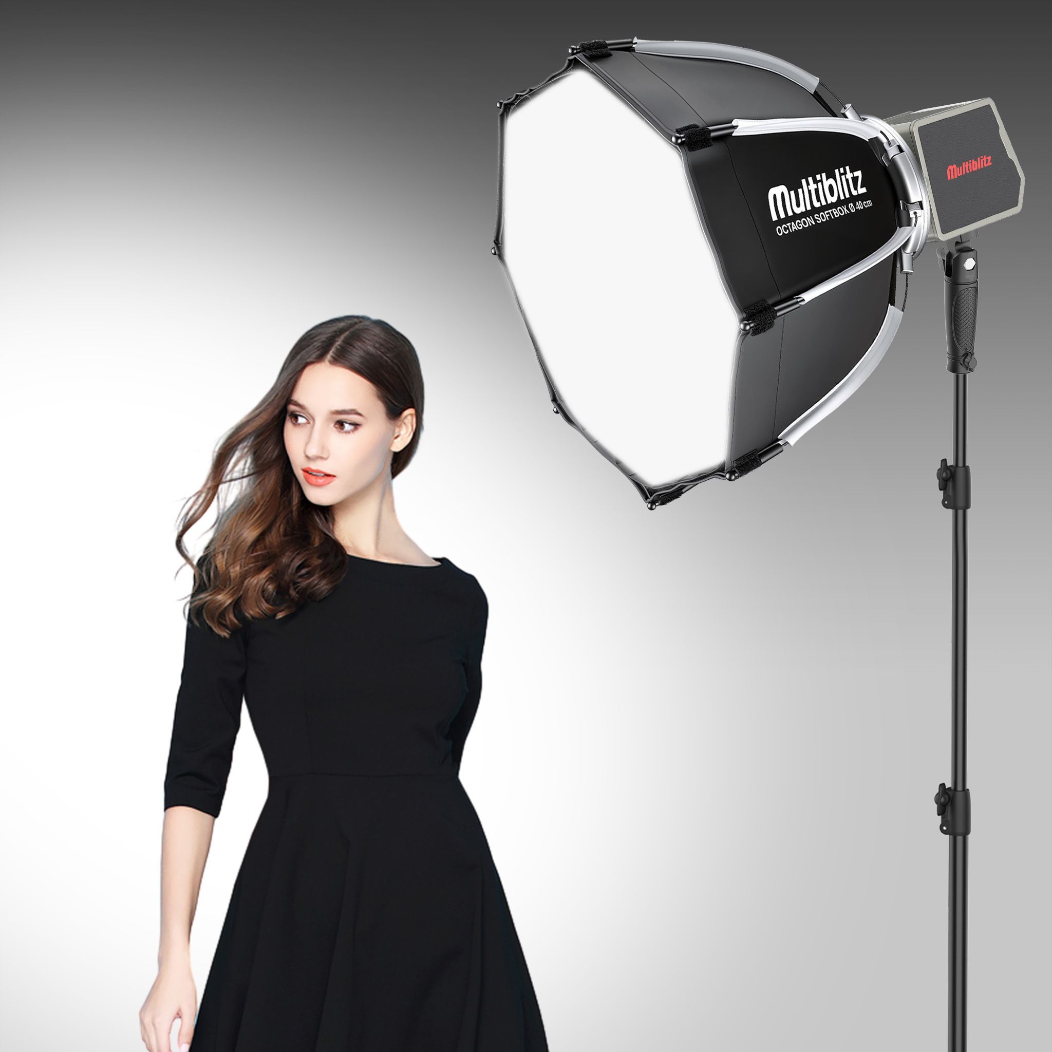 Multiblitz Multiblitz Set Fotolicht LED 100W Lampenstativ Lichtstativ Octagon Softbox Ø40cm