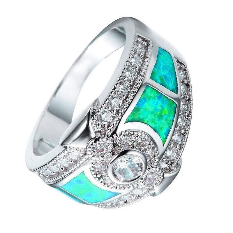 Brandneuer superstarker multicolore Cubic Zirkonia Damen Ring im grünem Opal Design Ein absolutes Hingucker Stück Fashion Style Handmade Women Vintage Edelstahl mit Silber Plated überzogen Hinweis: Das abgebildete Bild stellt den Artikel dar und Sie erhalten ihn aus der verfügbaren Charge. Das Bild
