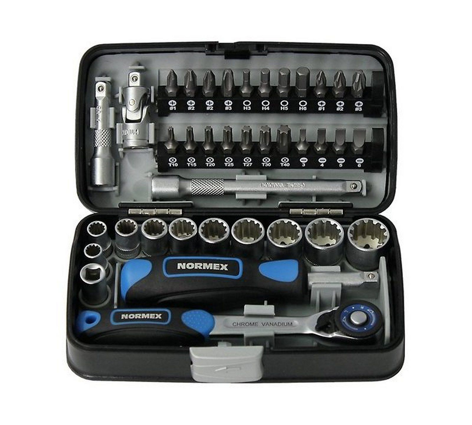 NORMEX MultiFit Kompakt-Schlüsselsatz Metrisch & Zoll 38-tlg. mit Knarre Bits Kardangelenk