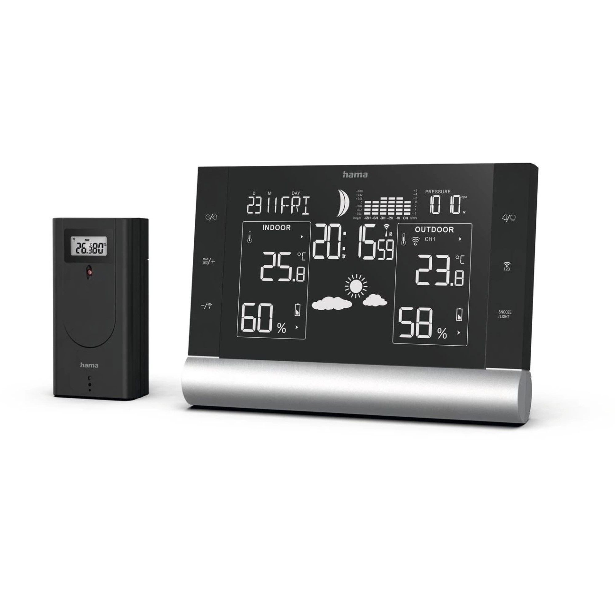 Hama Multifunktionale Black Line Plus Wetterstation mit Alarmfunktion & Barometer