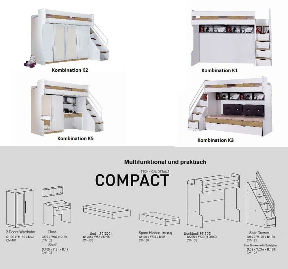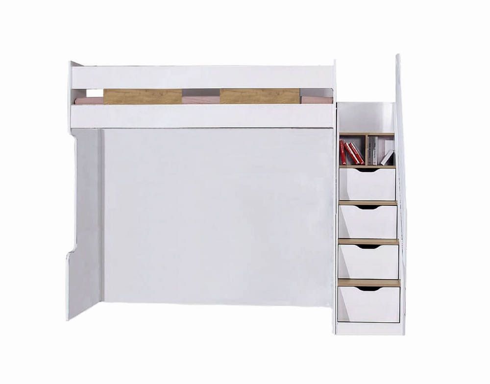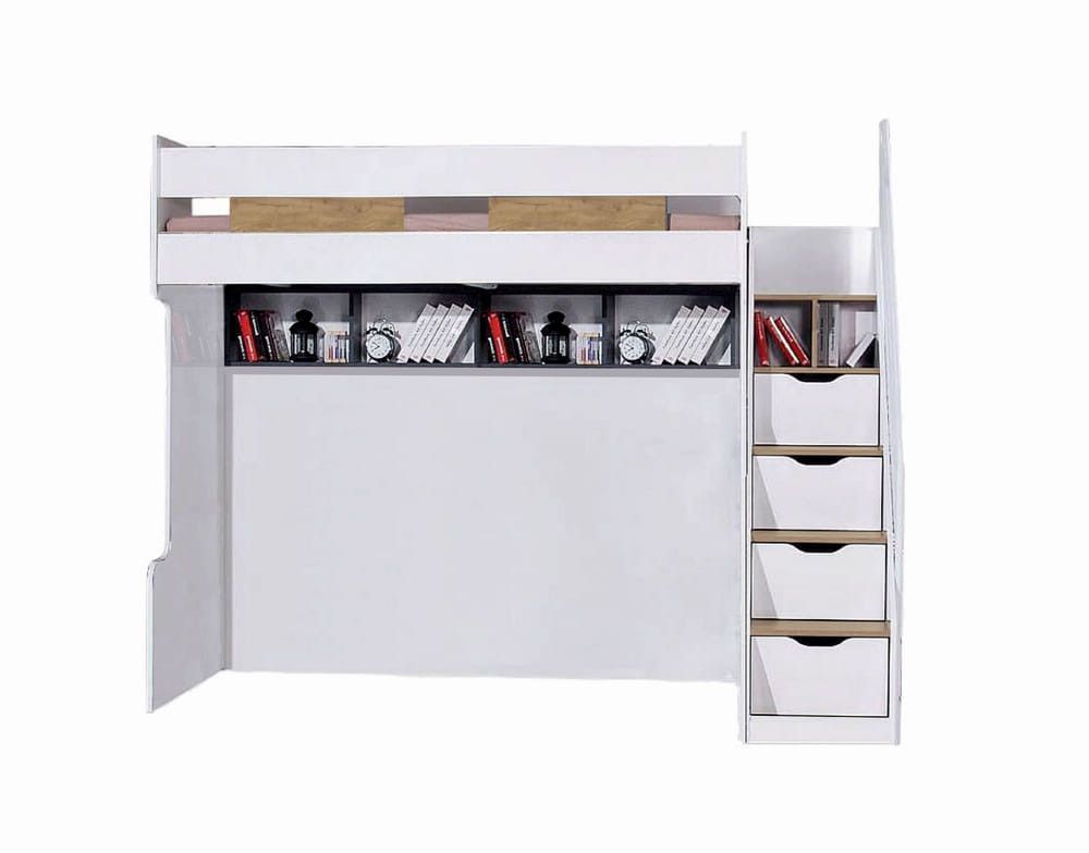 Multifunktions Hochbett 90x200cm Compact K1 natur mit Schubladentreppe und 2 Regale