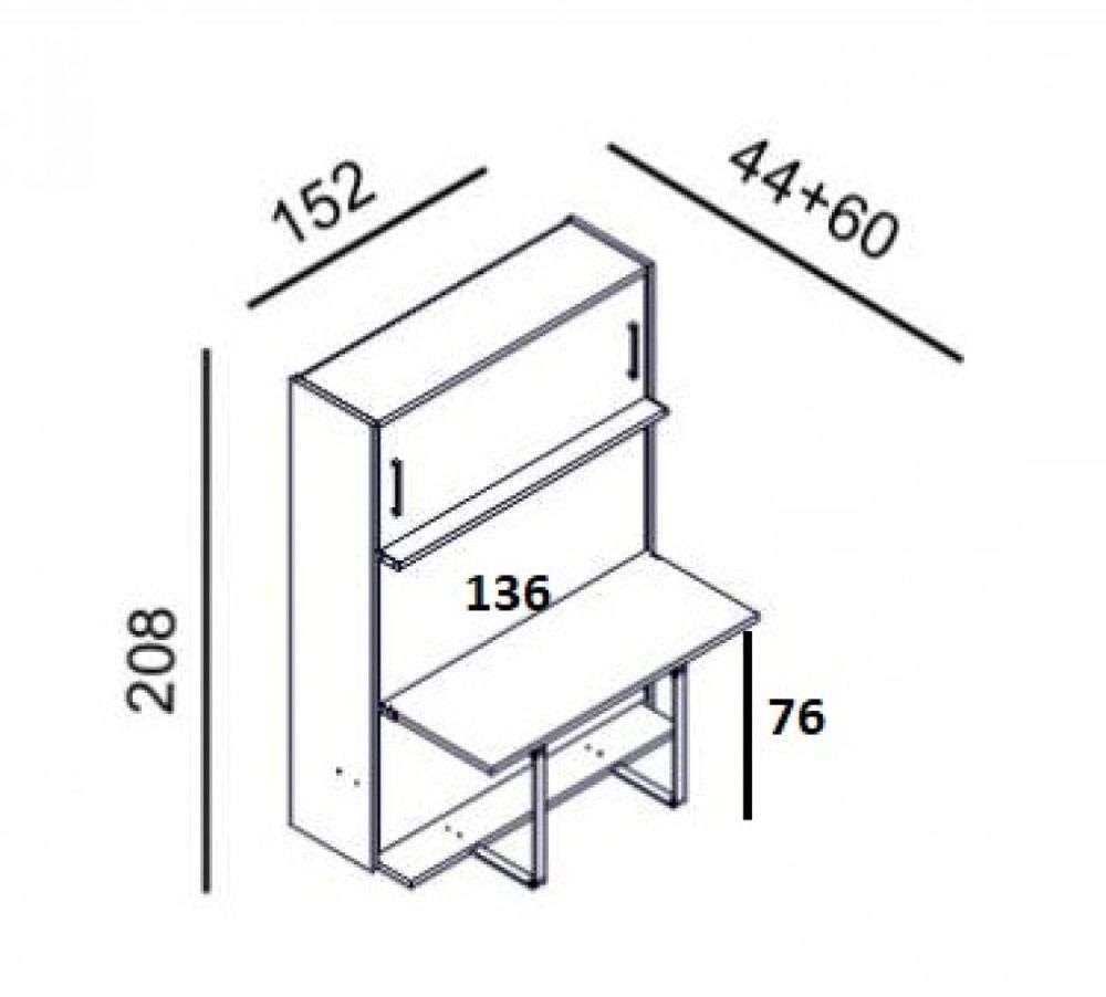 Multimo DOUBLE Schrankbett mit Schreibtisch, 140x190 cm