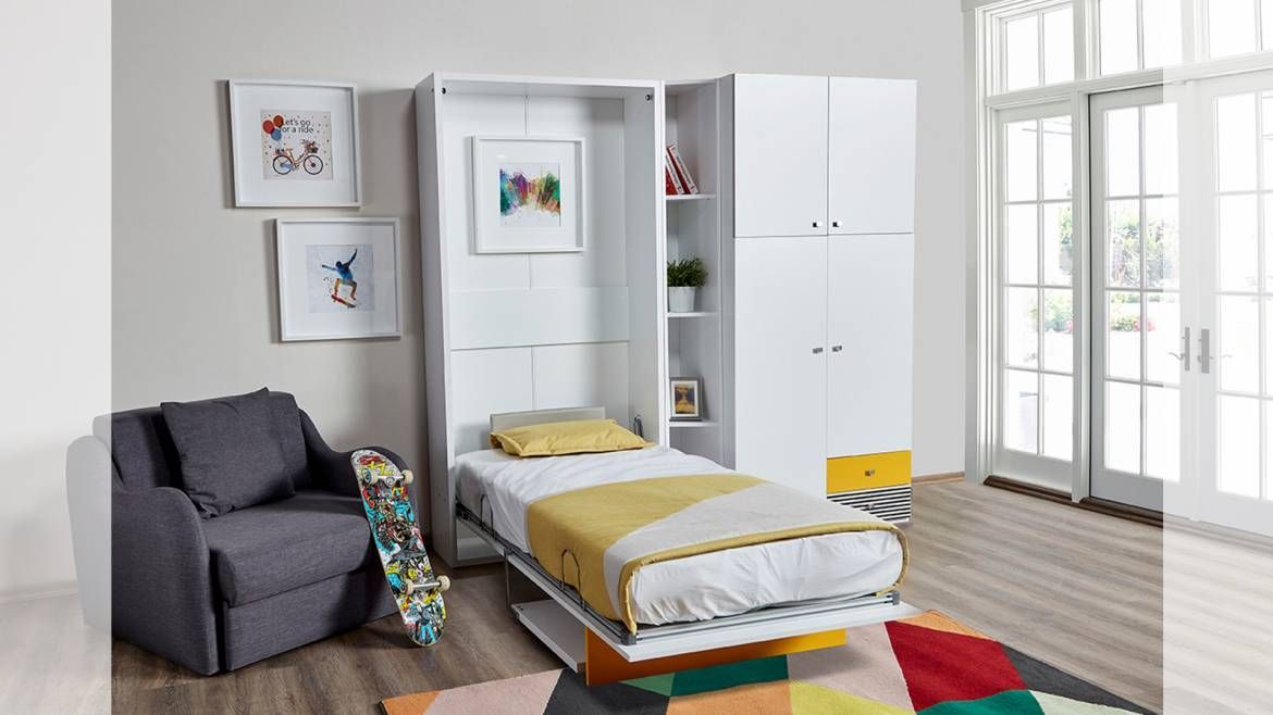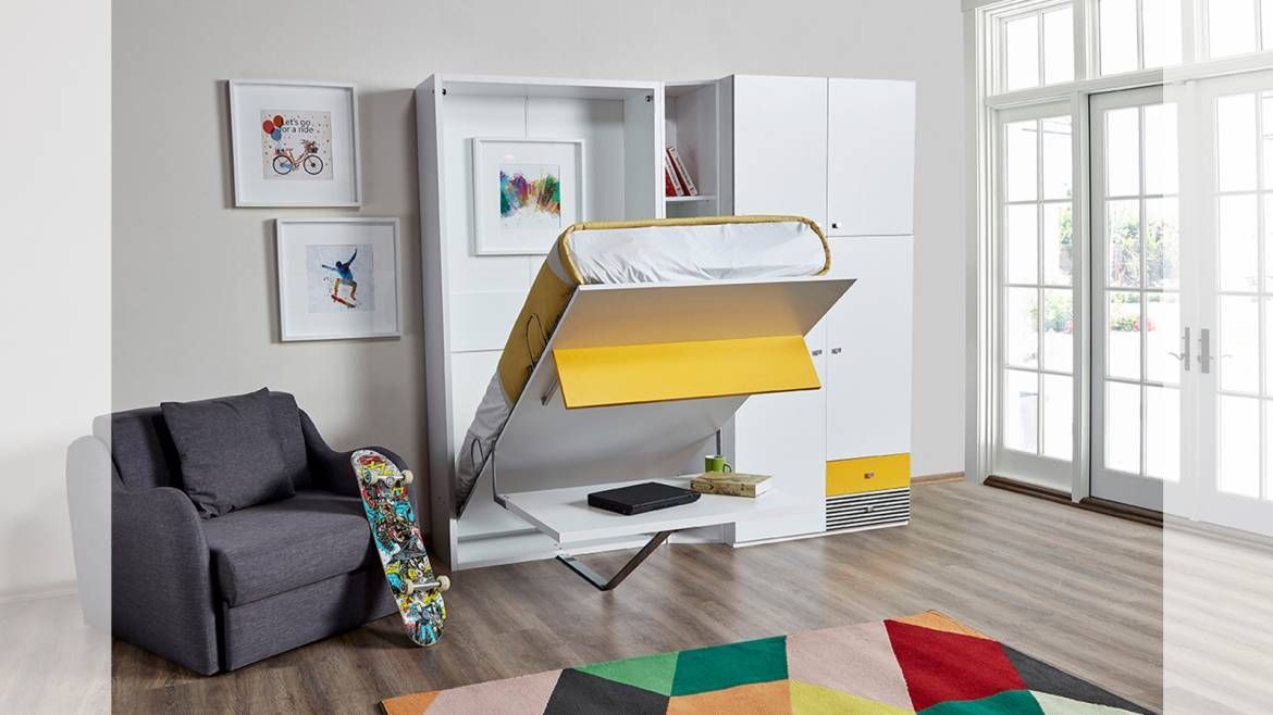 Multimo HAPPY Wandbett / Schrankbett mit Schreibtisch, 90x190 cm