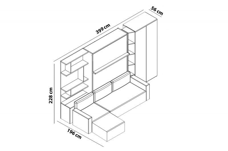 Multimo ROYAL Wohnwand mit Schrankbett / Wandbett und Sofa