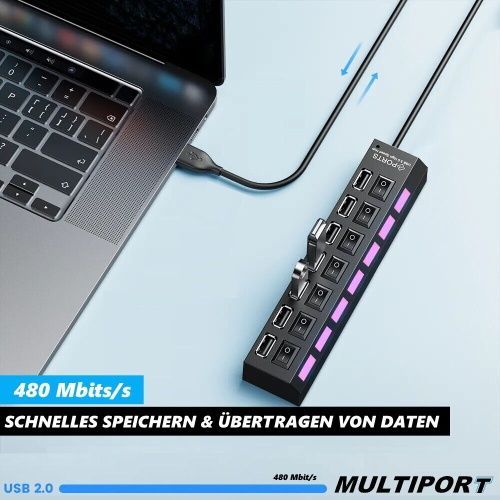 Multiport USB Hub 7-fach Port Splitter Adapter Superspeed Datenhub Verteiler
