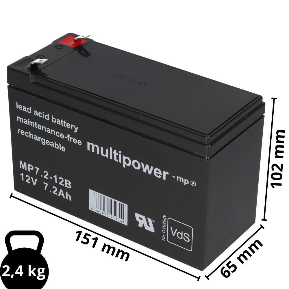 • Multipower Blei-Akku MP7,2-12B Pb 12V / 7,2Ah + Ladegerät