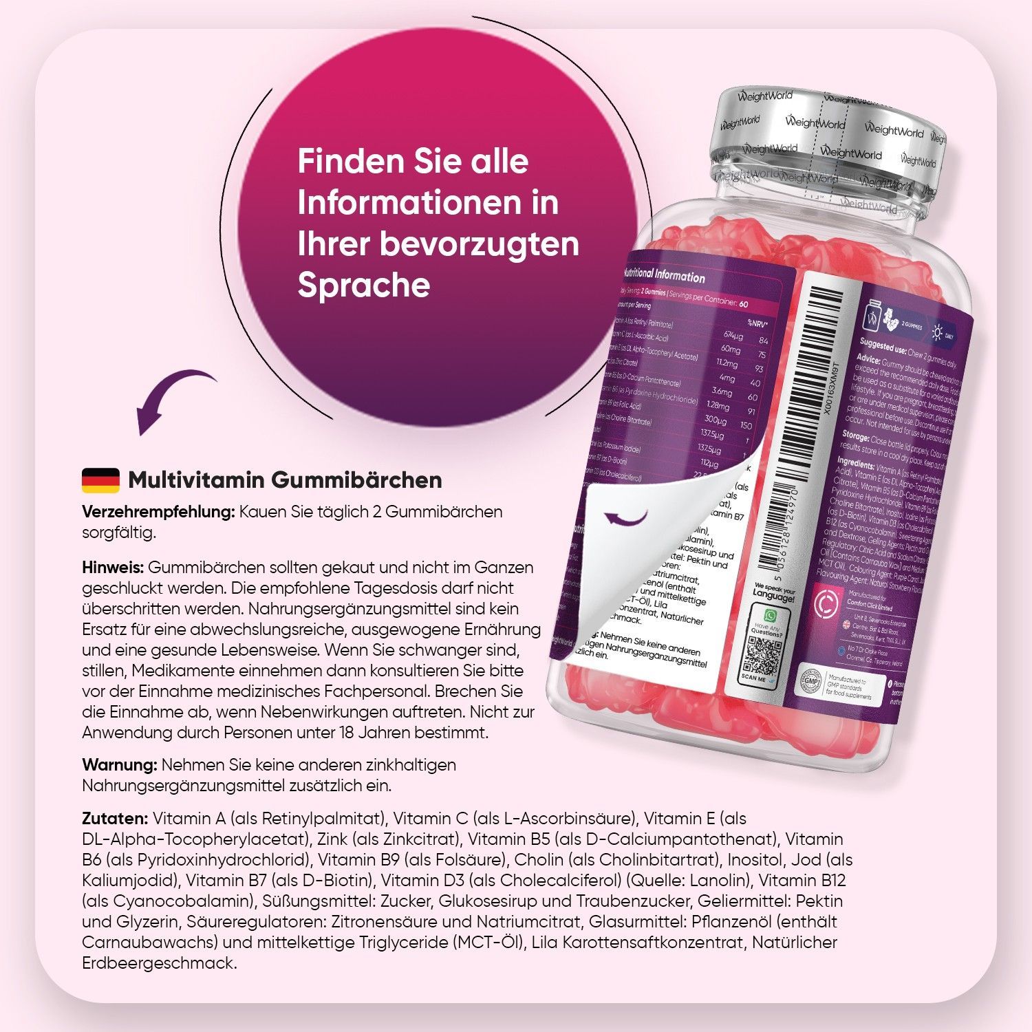 Multivitamin Gummibärchen - 120 Gummies mit 13 Zutaten -2 Flaschen