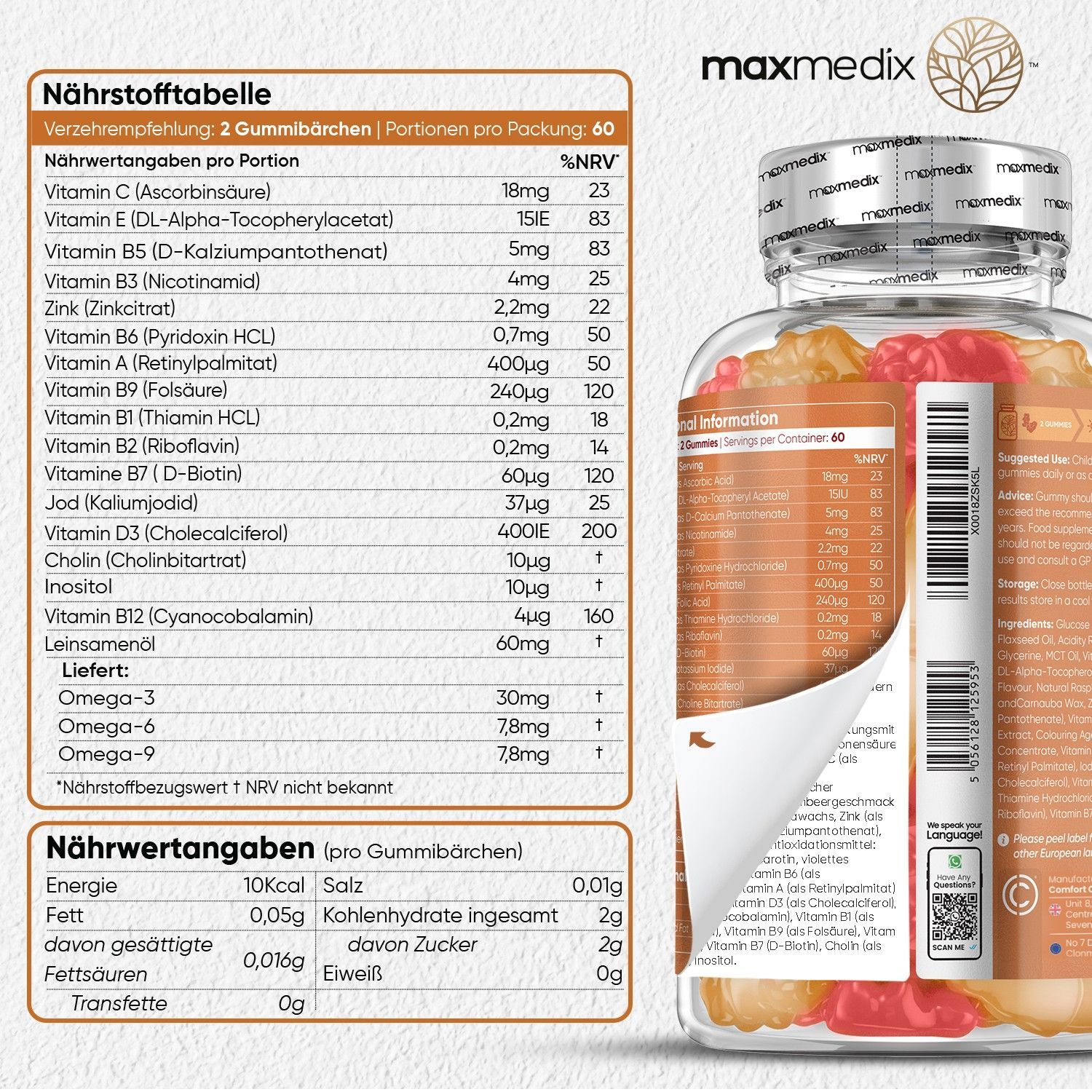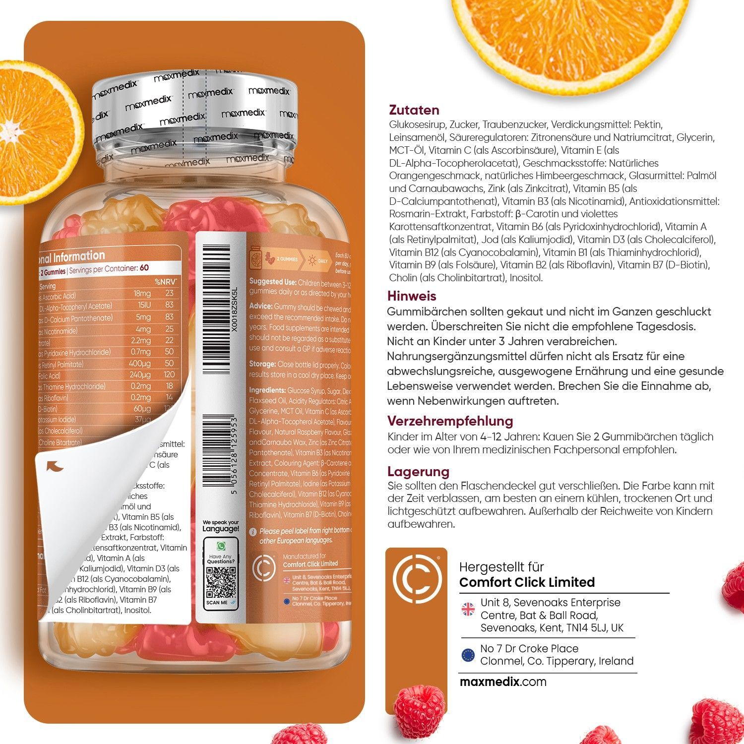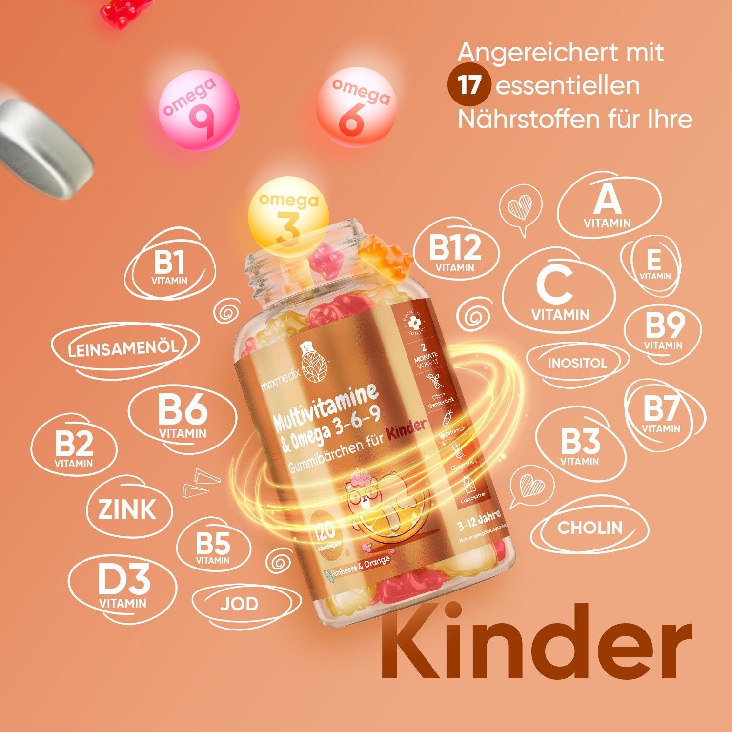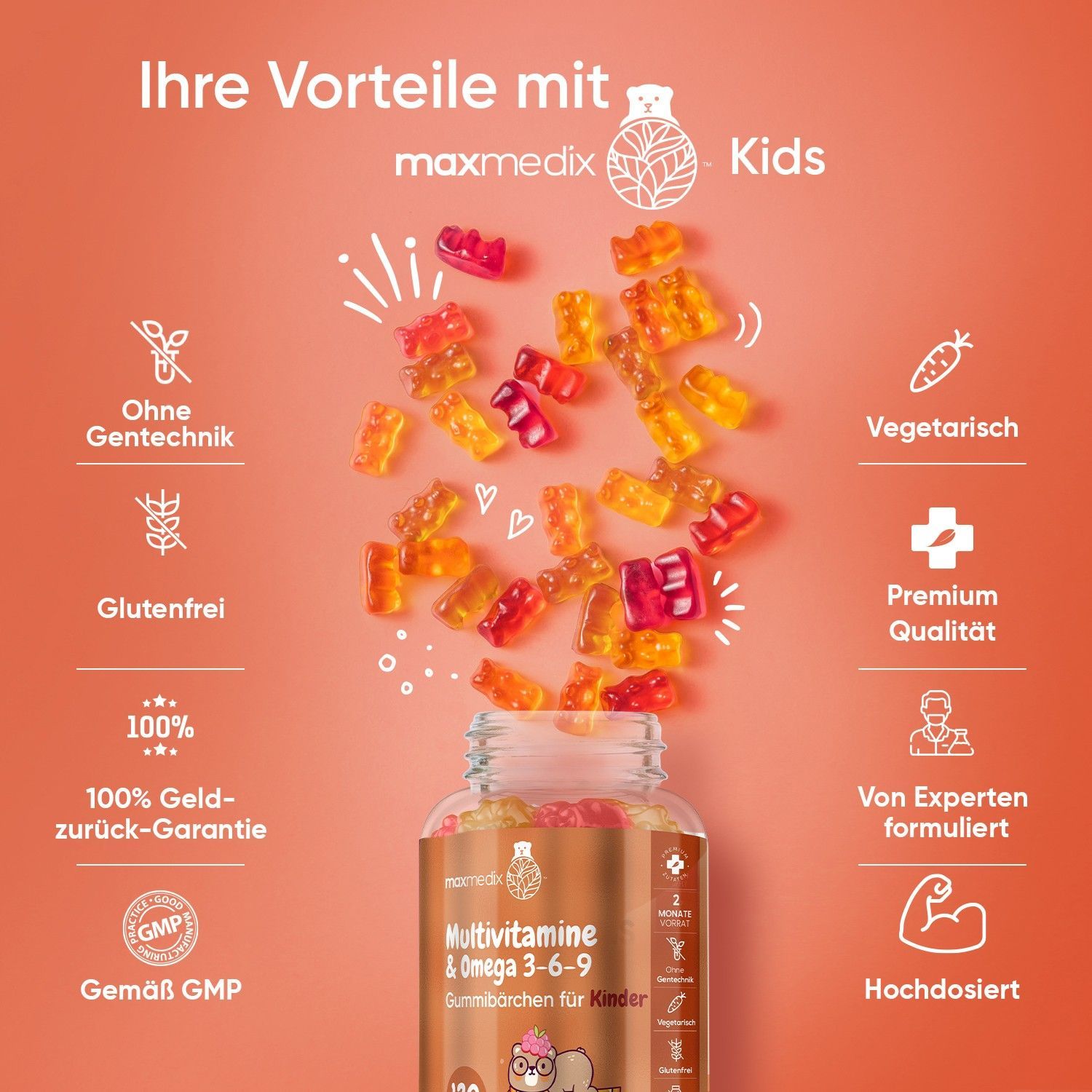 Multivitamin Gummibärchen für Kinder - Mit Omega 3, 6, 9, itamin C, E, D3 - maxmedix