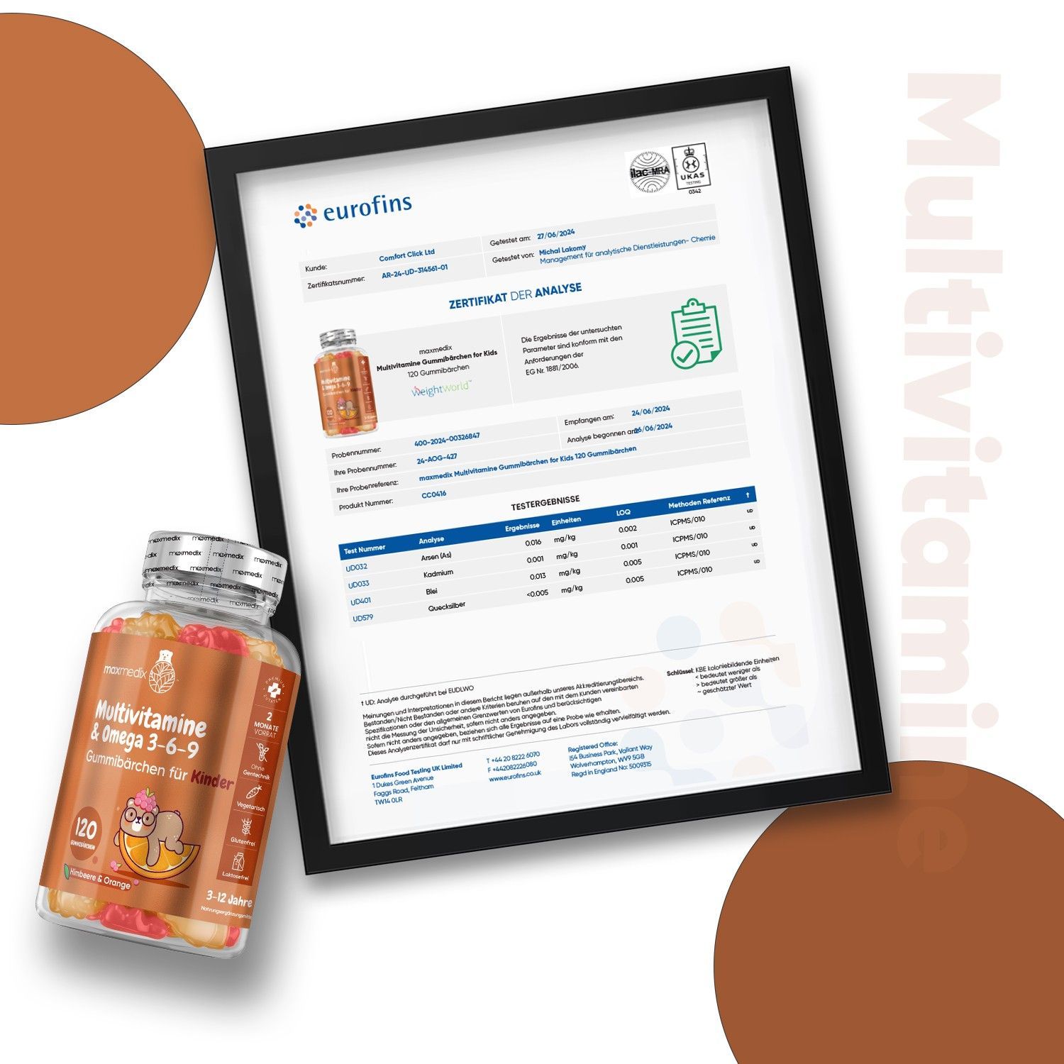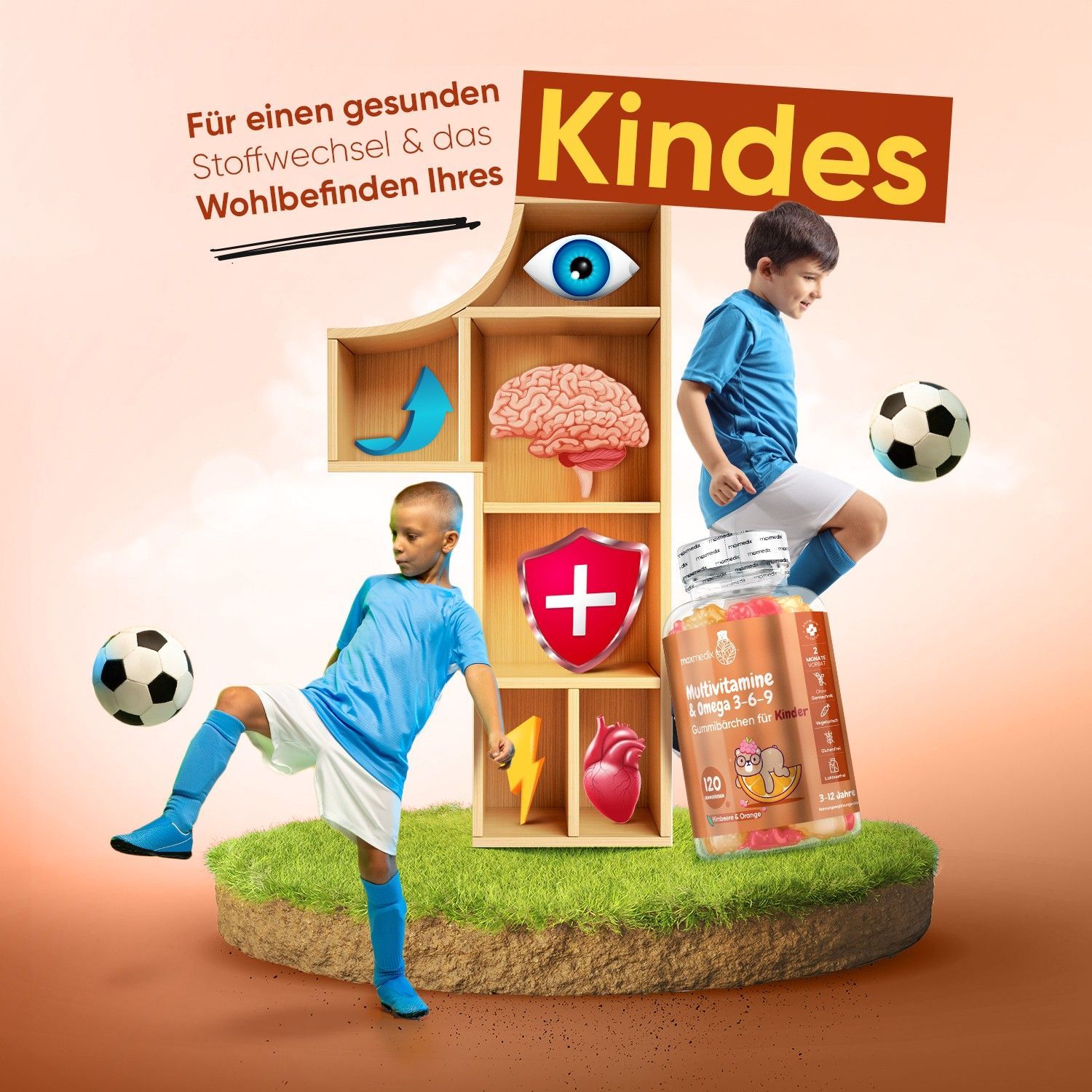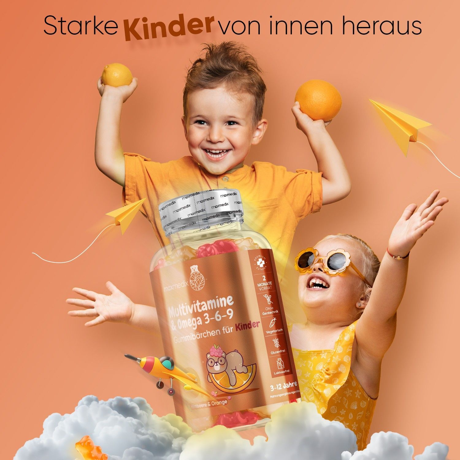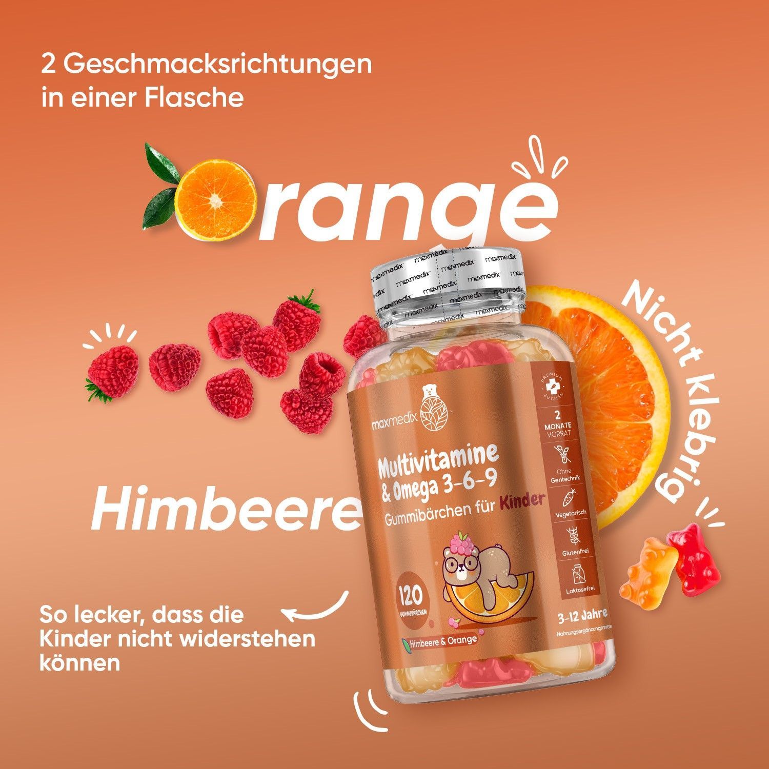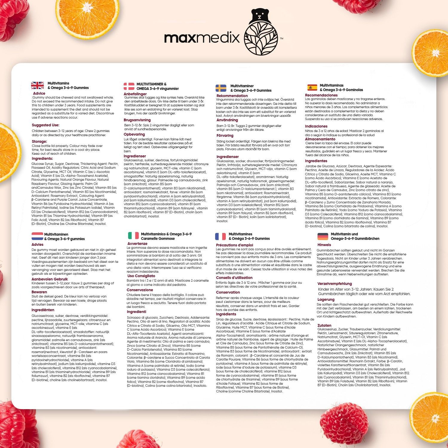 Multivitamin Gummibärchen für Kinder - Mit Omega 3, 6, 9, itamin C, E, D3 - maxmedix