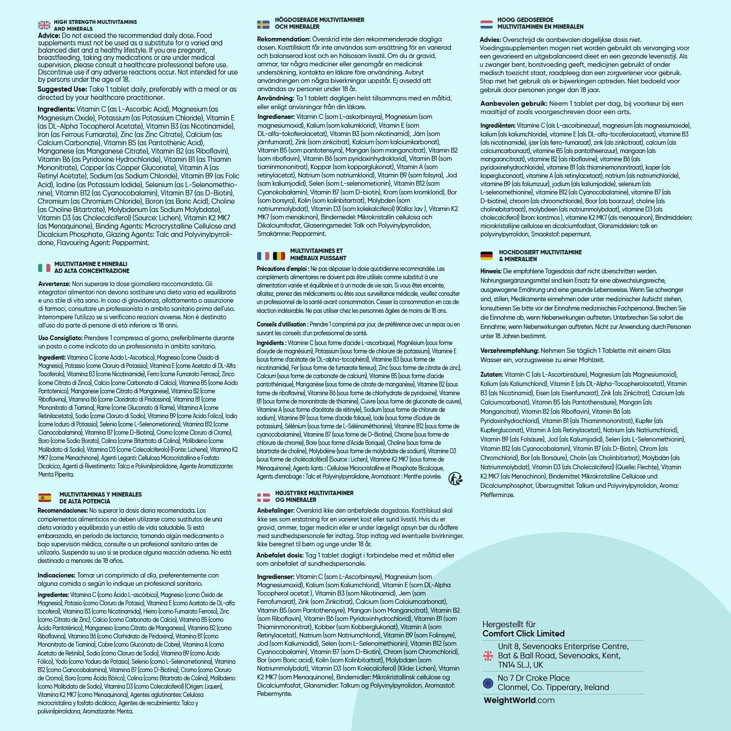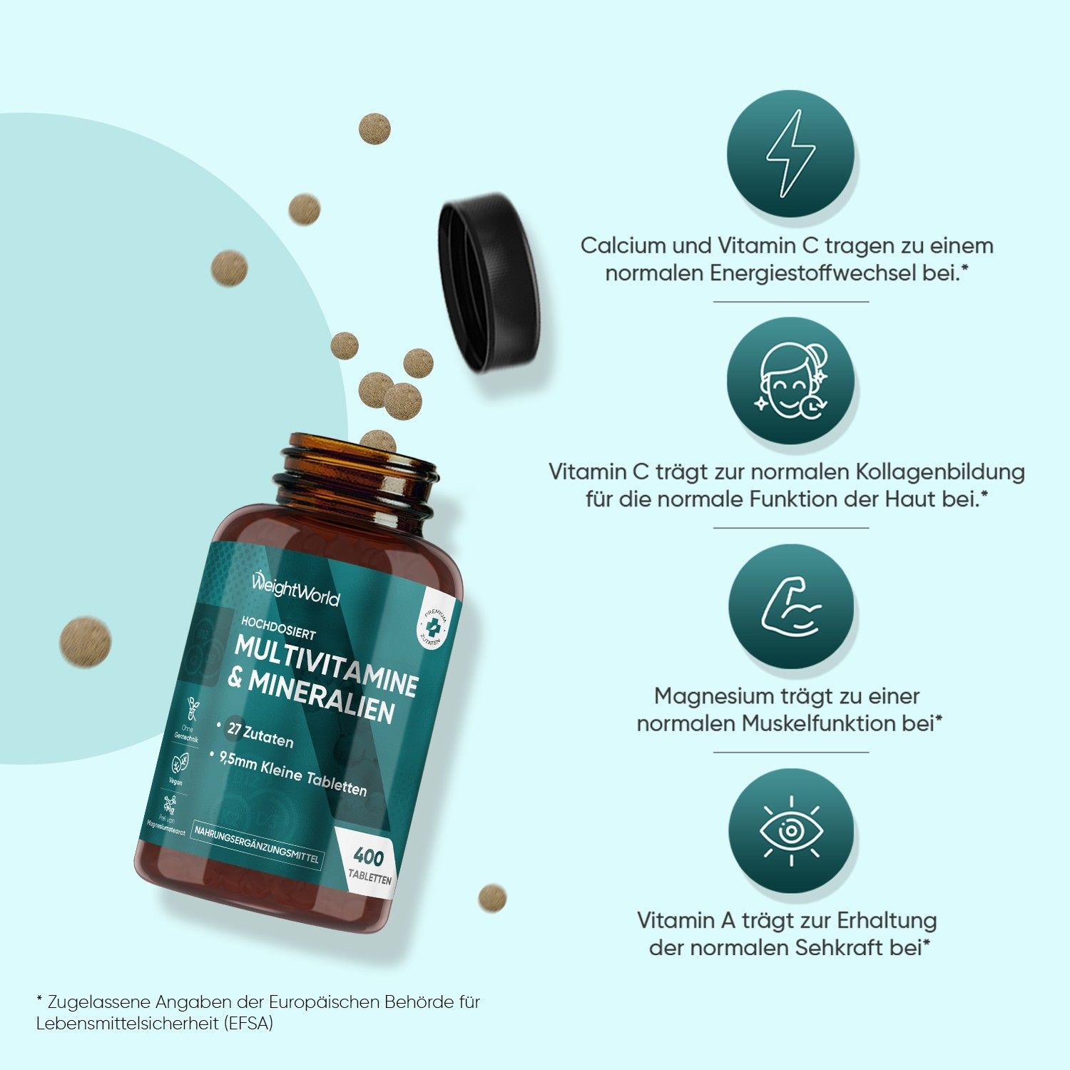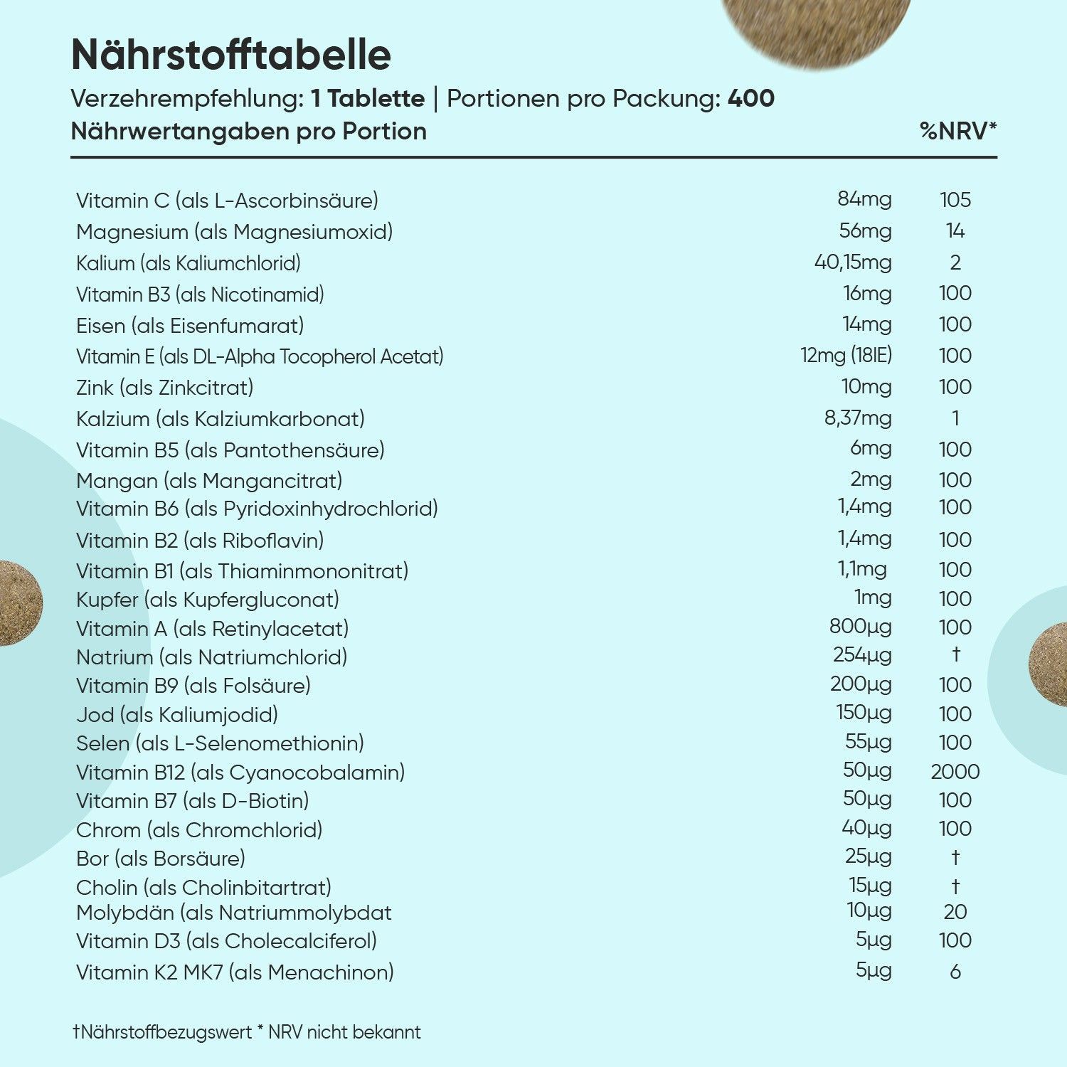 27 Zutaten - Die Multivitamin Tabletten halten mehr als 1 Jahr und enthalten 27 Zutaten wie Vitamin A, B Komplex, Biotin, Vitamin C, Vitamin D3, Vitamin E, Vitamin K, Folsäure, Vitamin B12, Eisen, Magnesium, Kalzium, Selen, Chrom, Kupfer, Jod, Bor, Cholin und Zink. Nehmen Sie täglich 1 Tablette mit einem Glas Wasser und zu einer Mahlzeit ein.