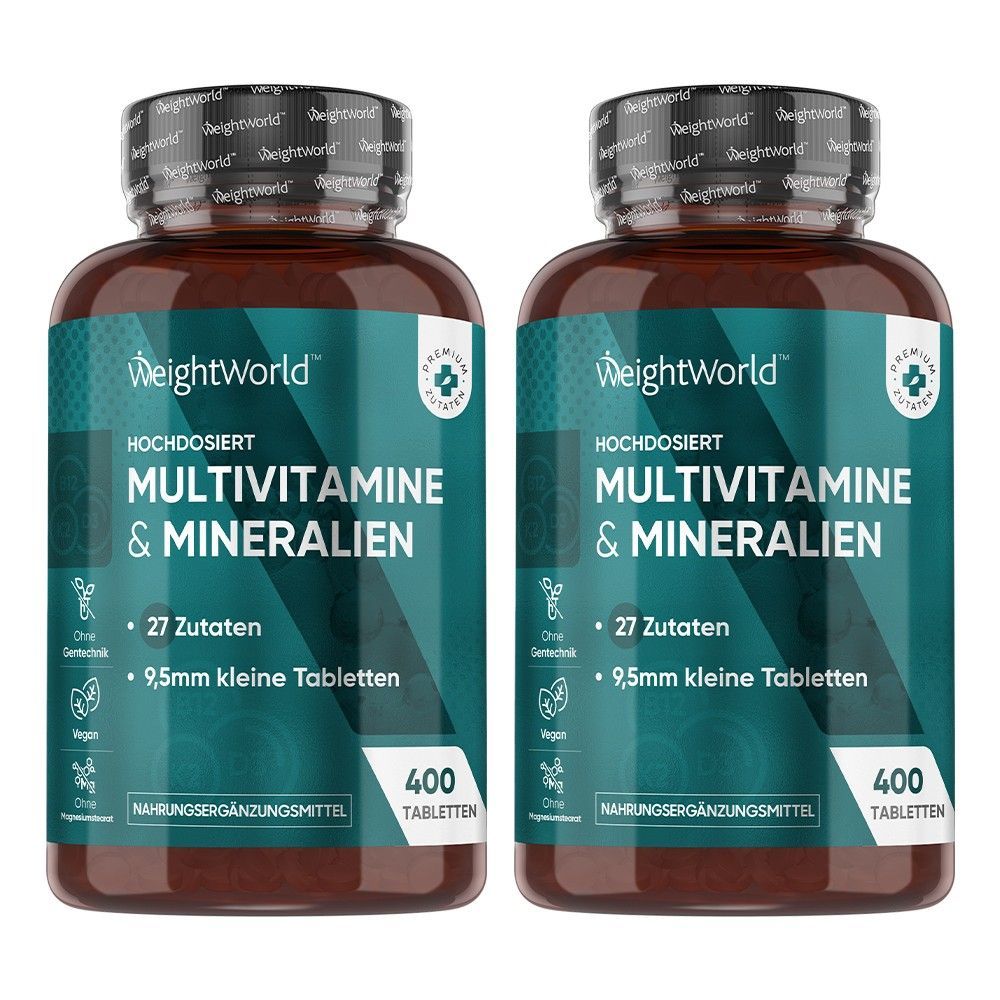 Multivitamin Tabletten - 400 vegane Tabletten - 27 Zutaten- WeightWorld - 2 Flaschen