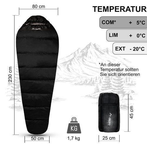 Mumienschlafsack 4 Jahreszeiten 230 cm. Warmer Schlafsack für Zelt Outdoor