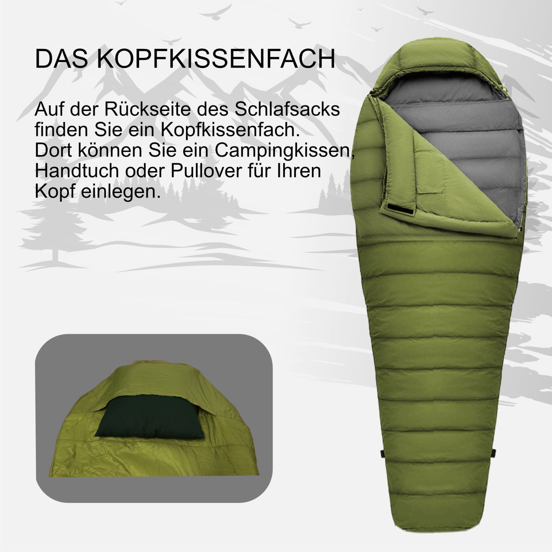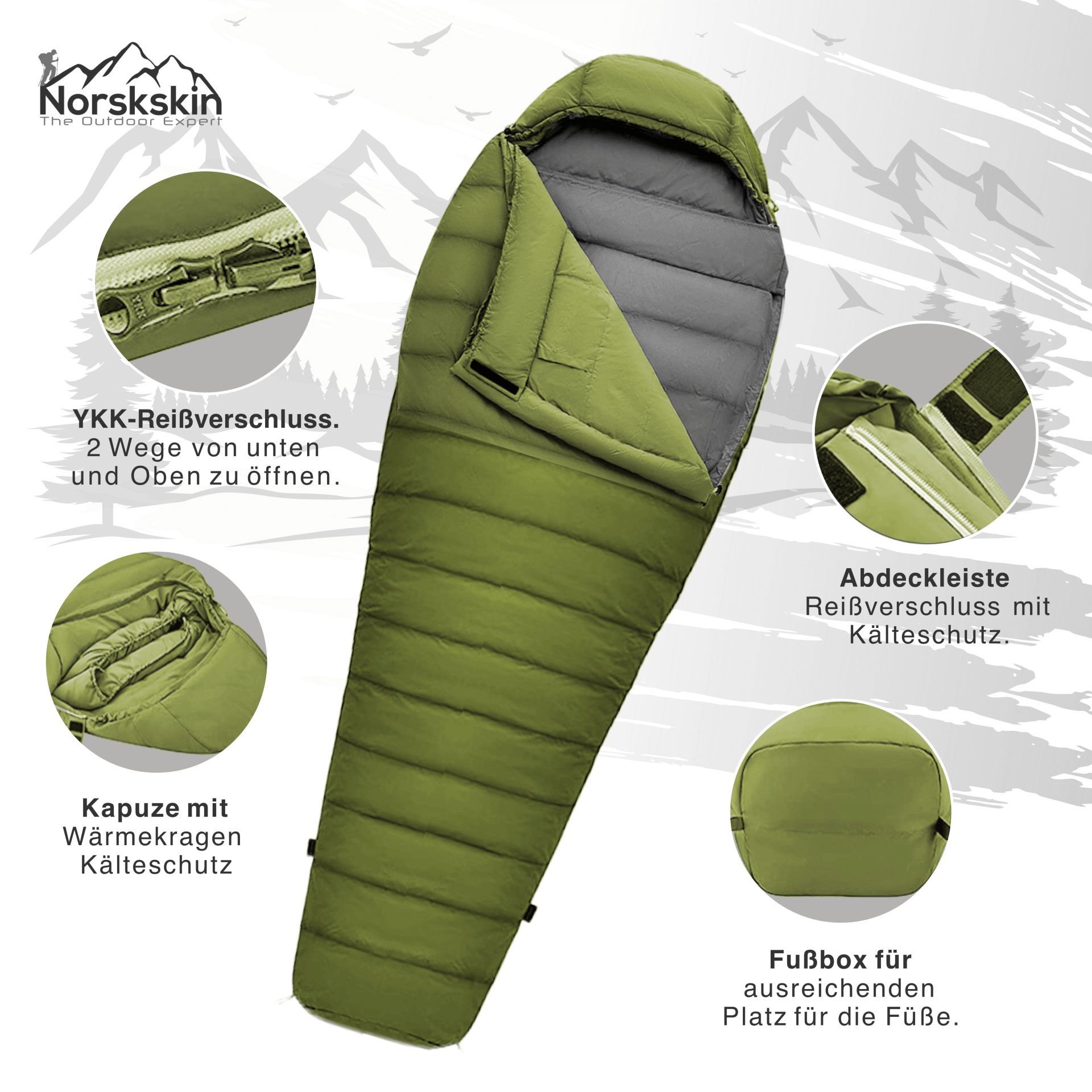 Mumienschlafsack Norskskin Ultralight Green 900 g 220 cm Koppelbar Nylon 400T Rechts