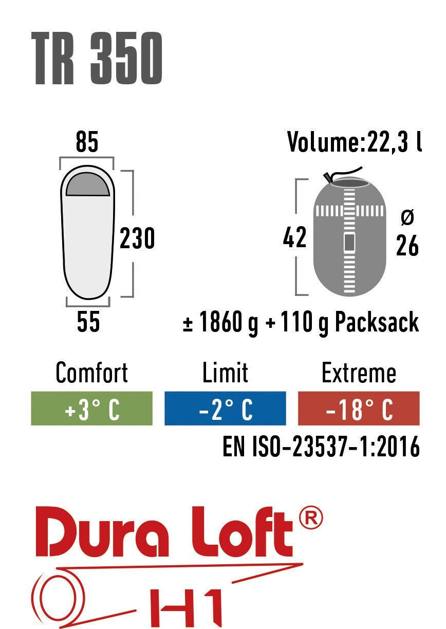 High Peak Mumienschlafsack TR 350 230x85/55 cm bis -18°C 1860g Schlafsack Winter (Gr. Groß)